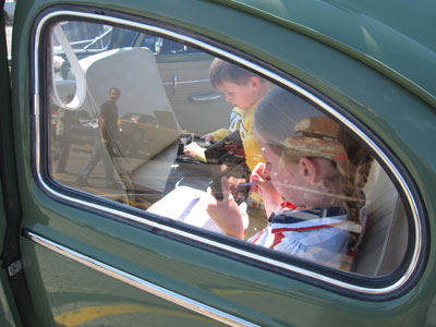 クラシックなオーバルの車内では、子供達がDSに夢中の様子。乗ってる車は古いけど、遊びはやはり日本もアメリカも共通のようです。