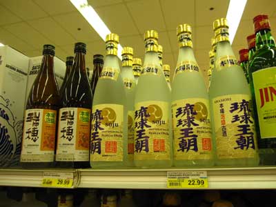 ↑リュウジ君〜〜〜!泡盛発見!でも・・・ ”古里” は置いてないみたい〜