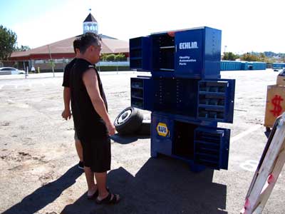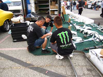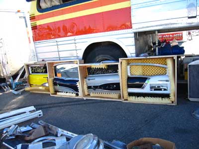 BOSSがパーツをGETするのは、スワップミートや、ショップだけではありません。 こうして、個人宅へ行く事もしばしば・・・。もちろん、現地の方々と長年のお付き合いをしているBOSSならではの入手ルートなのです♪ |