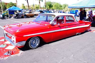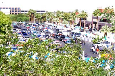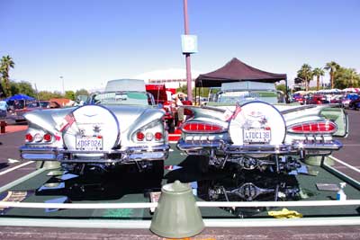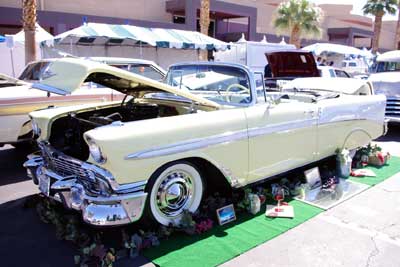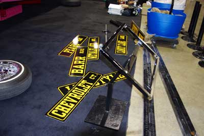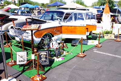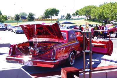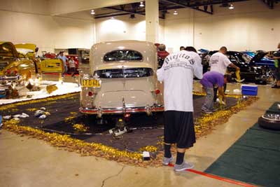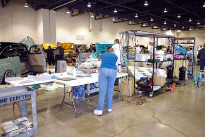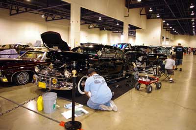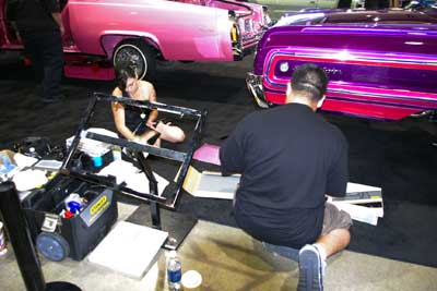 ディスプレイの準備中・・・カーショーの際は、こうして 奥さん達がお手伝いに来る様子も、珍しくありません。