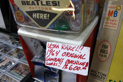 ↑きゃああ〜!!このショーケースに入ったミニカー、 ただのミニカーでは御座いません。 そう、ビンテージ物のミニカーです。。。 いくら円高とは言え、お値段、スゴイ事になってます。 ΣΣ(゚д゚lll) こっちは?ビートルズグッズ!日本版のレコードから Tシャツ、ガチャポンまで!しかも、 よ〜く見てみると・・・! ↓ BOSSと同い年のマシンだそうで! しかも、ちゃんと動くそうです! ヽ(゚Д゚;)ノ!! |