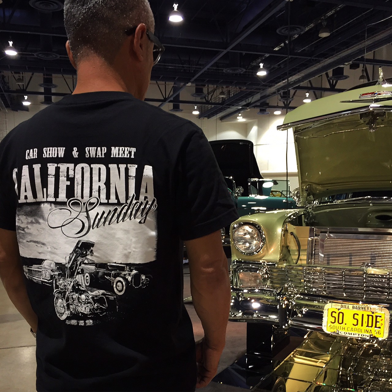 カリフォルニアサンデーでは、 当日本部テントにて、 会場限定・数量限定で Tシャツの販売を致します。 フロントにはCSロゴ、 バックは写真の通りです。 色は、黒ベース・白ロゴの1種類のみ、 サイズは (S) (M) (L) (XL) を 揃えております。 AM10時より販売開始、 無くなり次第終了とさせて頂きます。 価格は、1枚 \2,500 税込