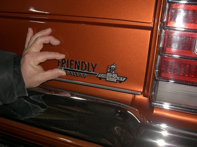 SOUTH SIDE C.Cのアンソニー氏から、 ←以前このような物を頂きました・・・・ ”FRIENDLY DALLAS”のエンブレム。 BOWTIEマークの上には、男の子が ちょこんと、顔を出してます。 ずーーーーーーっと、欲しくて欲しくて、 お願いしてやっと、手に入れる事が出来た 思い入れのある一品です。 ThankYou VerryMuch Anthony!!!! |